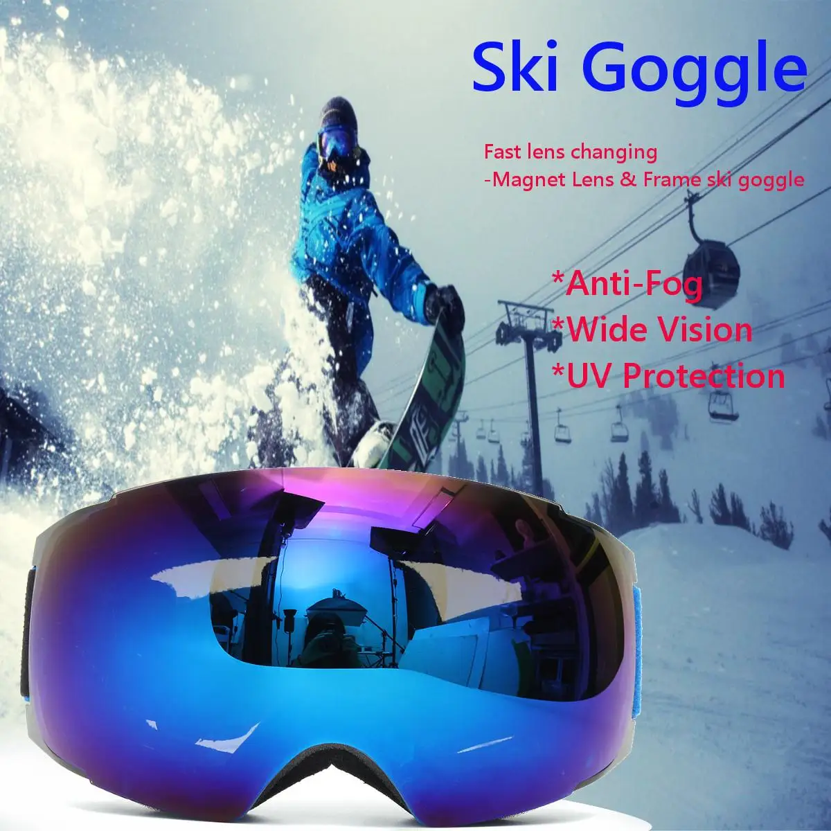 المنتجات ذات الصلة ل Snowboarding و للجنسين الكبار الجليد الثلج Ski نظارات المغناطيس الأشعة فوق البنفسجية الحماية مكافحة الضباب المزدوج عدسة الأزرق
