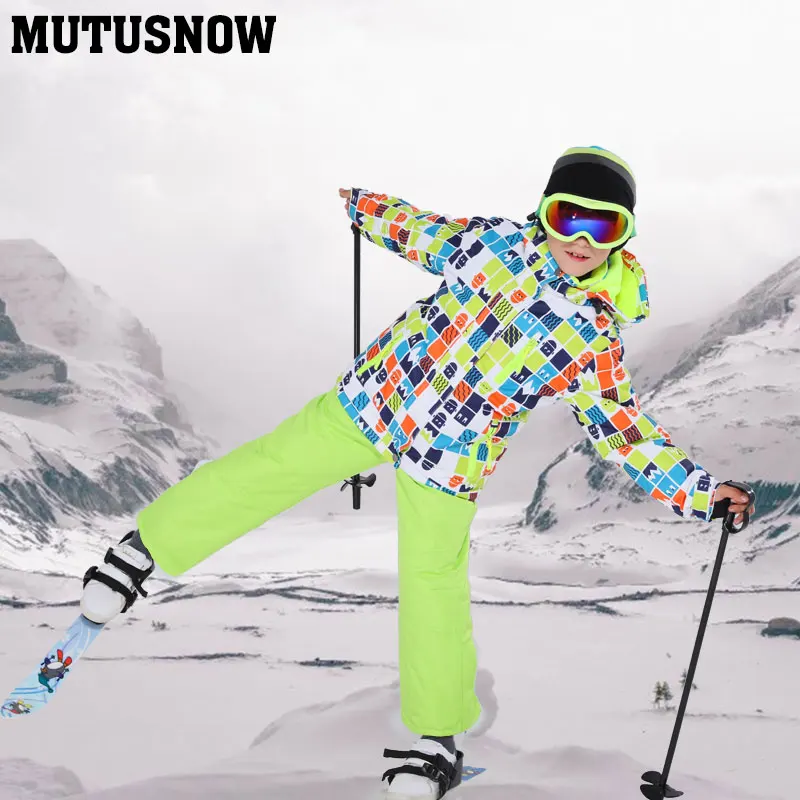معلومات اضافية 2019 جديد الأطفال بدلة تزلج للأطفال يندبروف ماء دافئ الفتيان الثلوج جاكيت وسروال الشتاء الثلوج تزلج على الجليد دعوى مجموعة