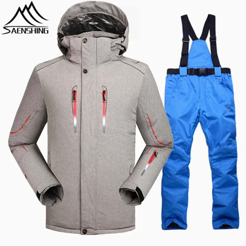 استعارات من SAENSHING سوبر الدافئة الشتاء بدلة تزلج الذكور للماء 10000 على الجليد الدعاوى الرجال تنفس التزلج سترة تزلج على الجليد بانت